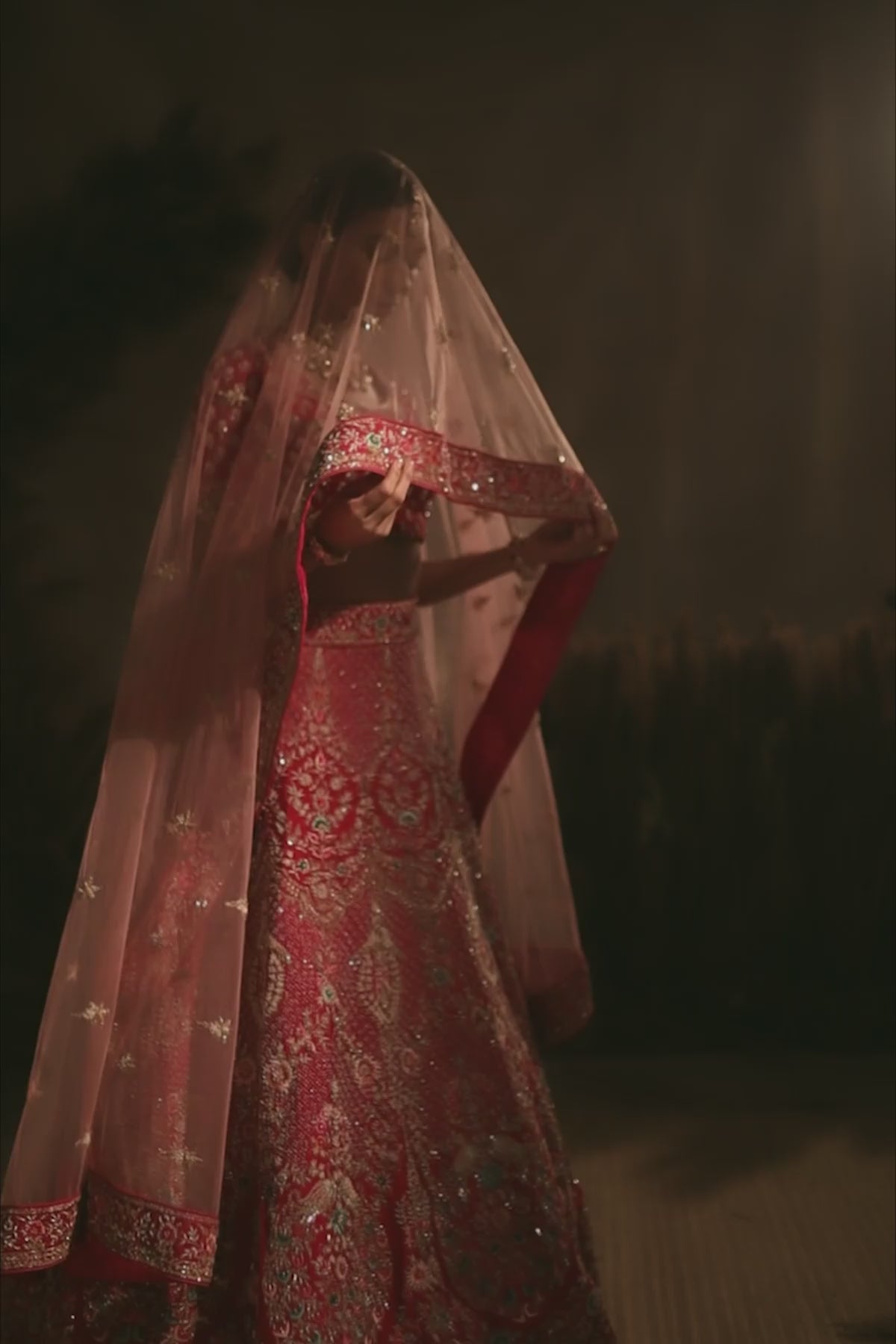Scarlet Red Hand Embroidered Bridal Lehenga in Raw Silk